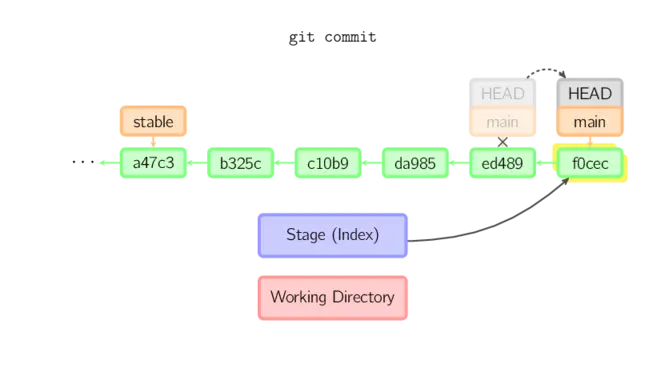 多个提交就形成了一条时间线,每次提交完,会移动当前分支(main) HEAD的“指针”位置。