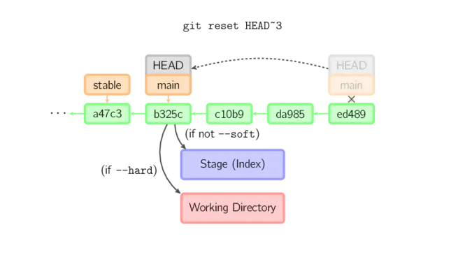 reset命令把当前分支指向另一个位置,并且有选择的变动工作目录和索引。也用来在从历史仓库中复制文件到索引,而不动工作目录。
