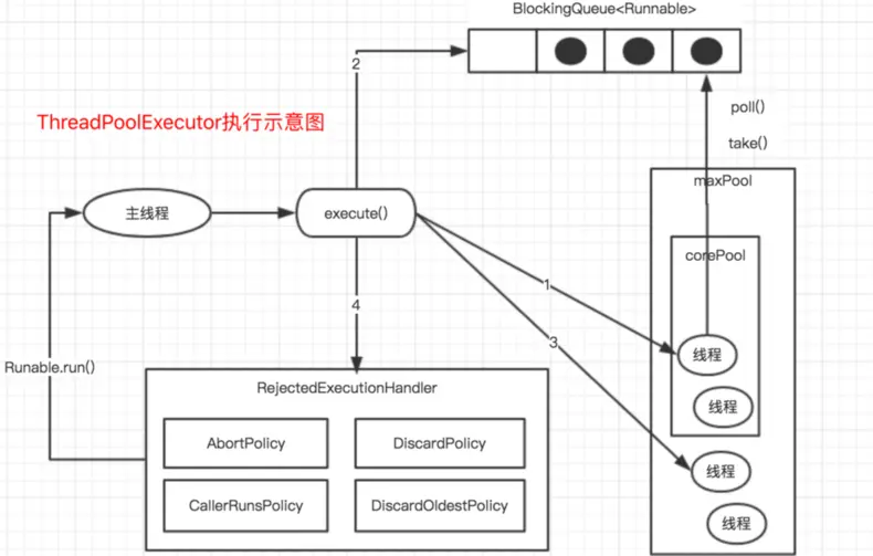 • AbortPolicy 为java线程池默认的阻塞策略,不执行此任务,而且直接抛出一个运行时异常,切记ThreadPoolExecutor.execute需要try catch,否则程序会直接退出。