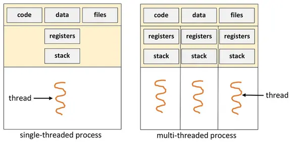 - 缺点:进程的建立及切换 (context switching) 的开销都比较大,因为涉及到 OS 资源的切换,彼此进程间要通信也比较复杂及耗时。
