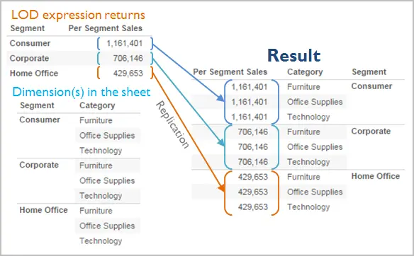 {FIXED [Segment], [Category] : SUM([Sales])}